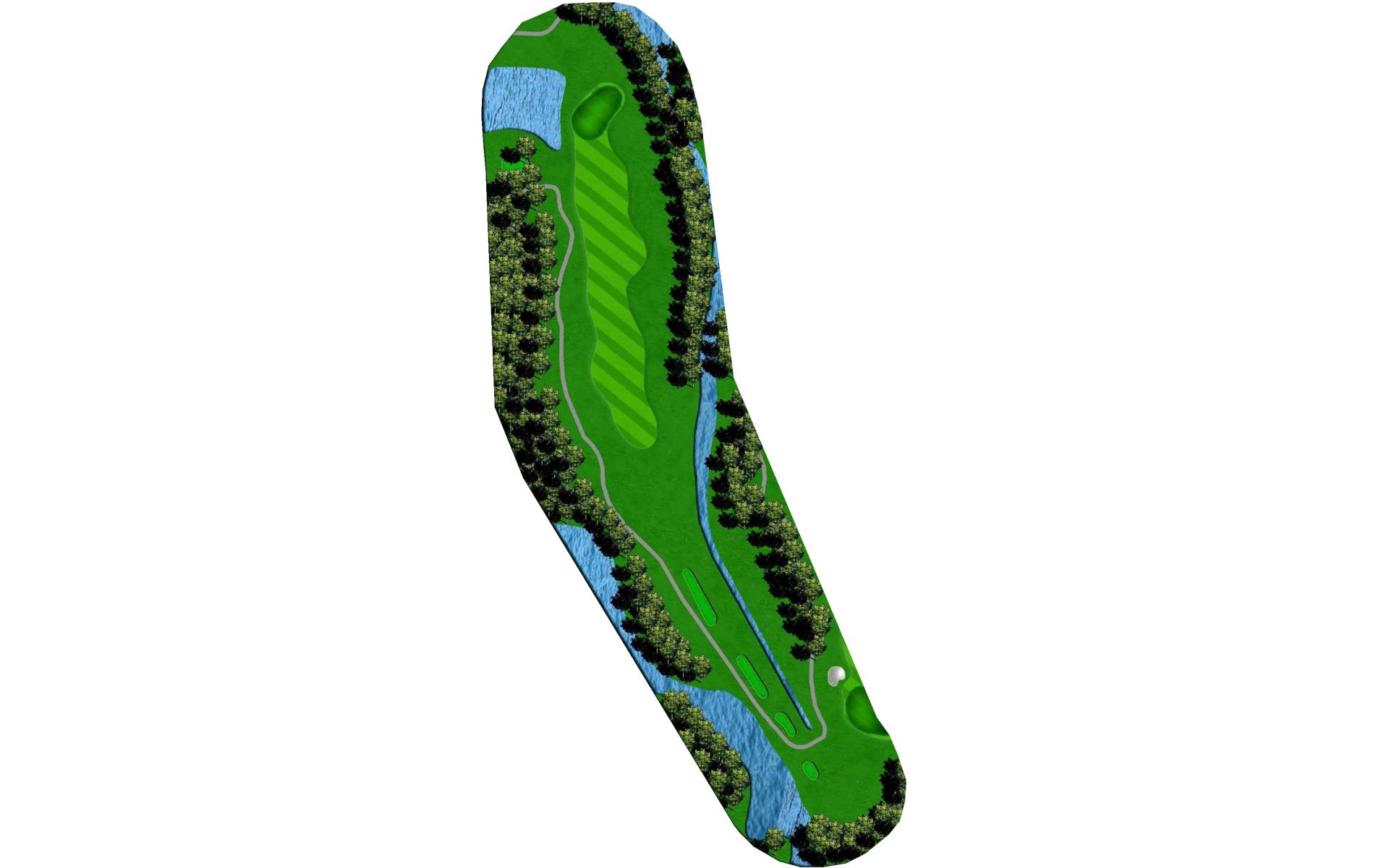 A straight away par 4 with a wetland area 250 yards off the tee requiring long hitters to lay-up off the tee. A large lake on the entire right side of this hole comes into play. A large green with many challenging hole locations.