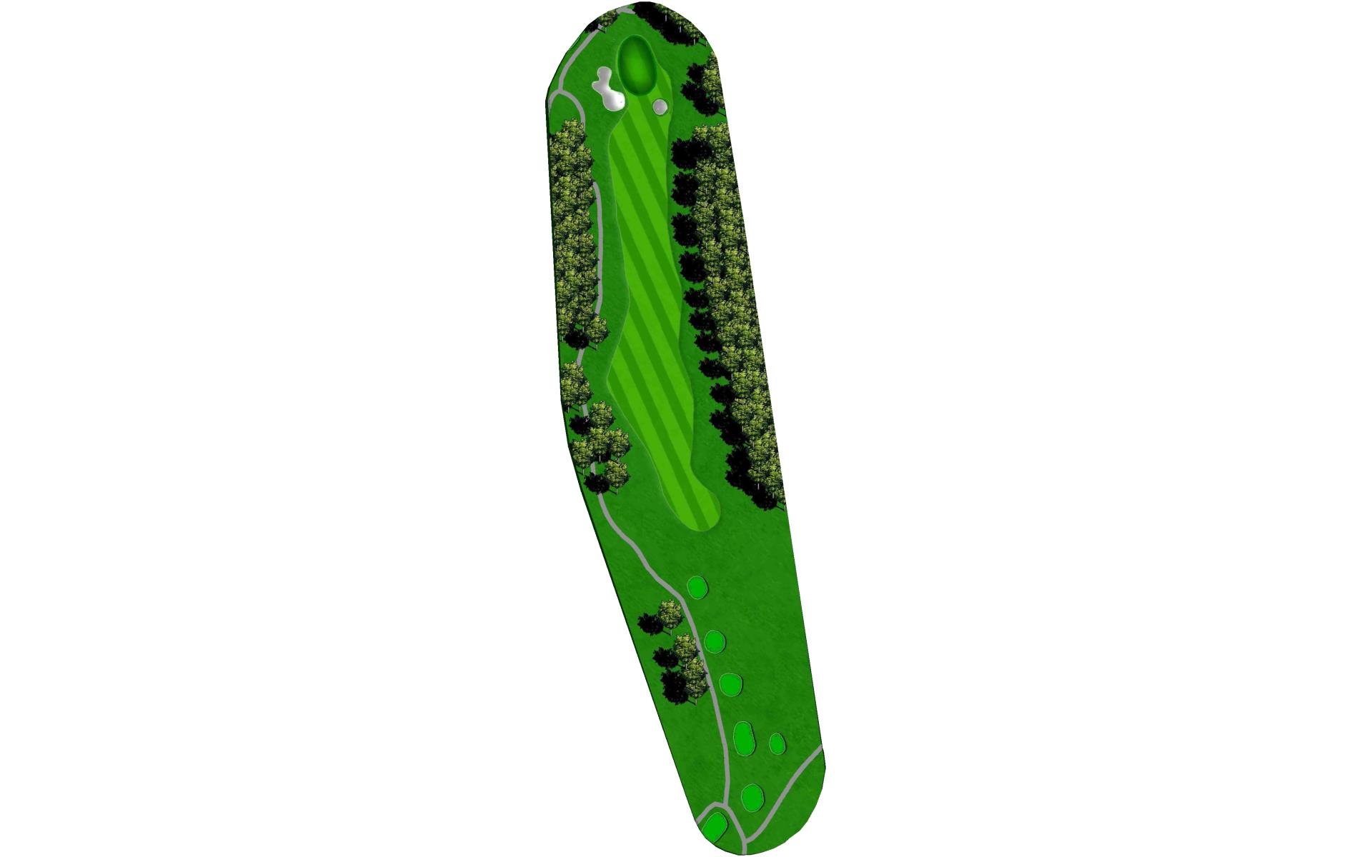 This long uphill Par 3 requires a well struck tee ball. The in the front sits 12 feet below the green and has a large lip; you definitely do not want to be there.