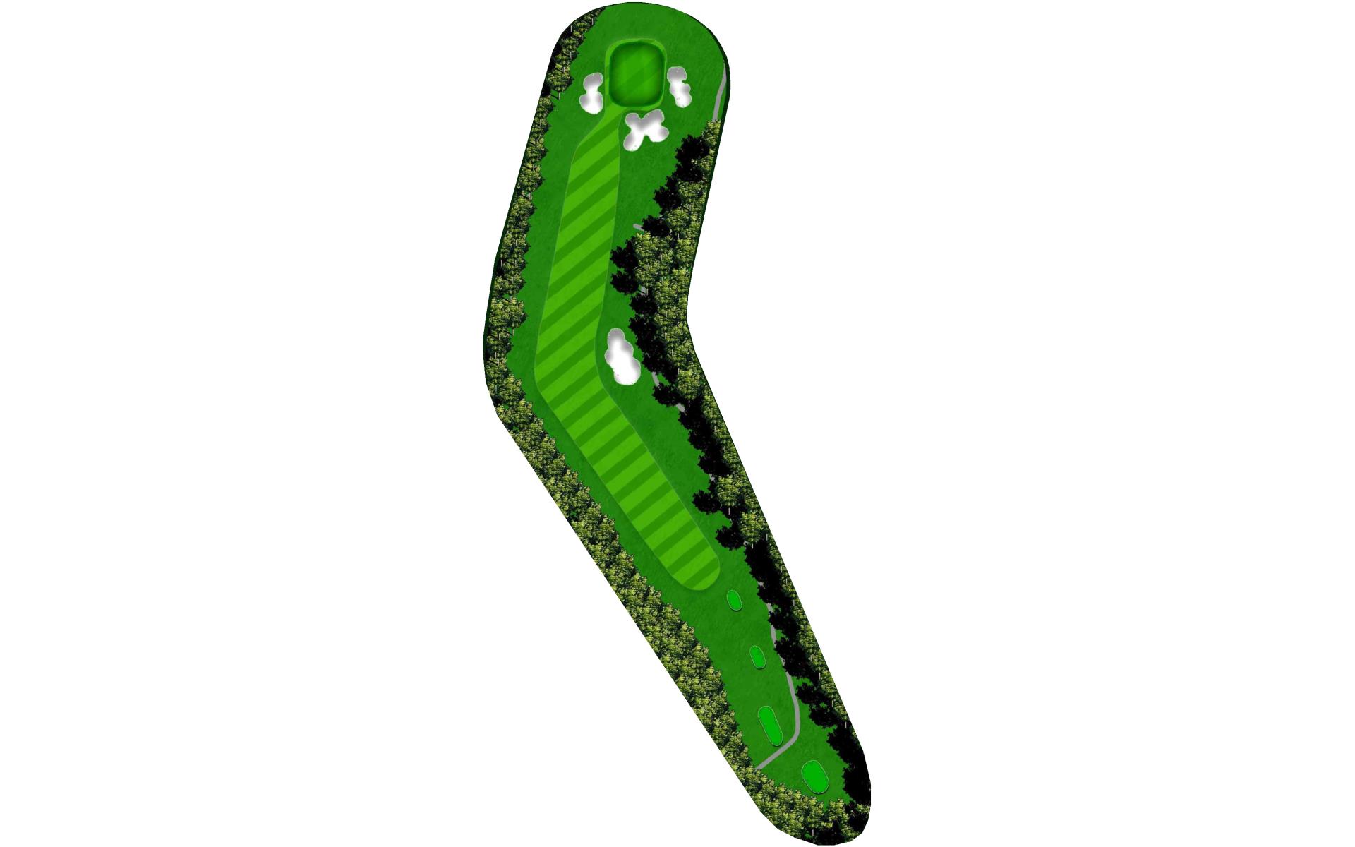 A dogleg right par 4 with a downhill shot into a wide, two-tiered green. Another hole where your tee shot to the corner will give you a mid iron into the green or a good cut could put a wedge in your hand. The second shot is into a shallow green surrounded by bunkers so your choice of clubs is important.